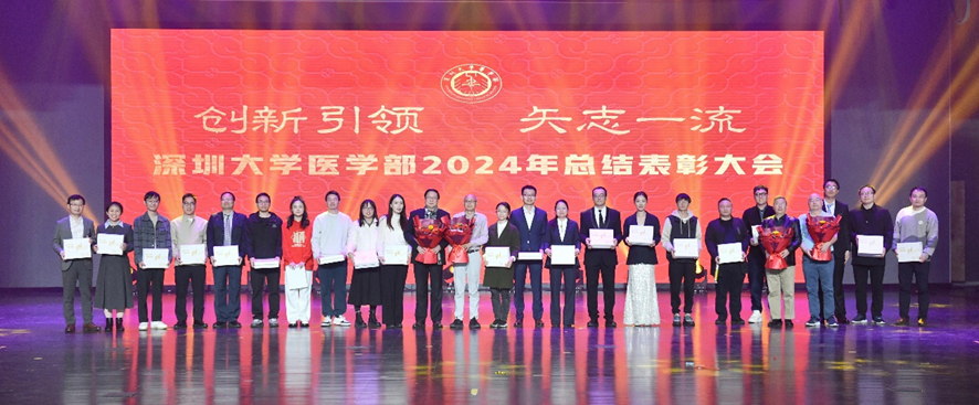李永华在表彰大会上发表了热情洋溢的讲话,他说,建校42年来,深圳大学秉承“自立、自律、自强”的校训,紧随特区,锐意改革、快速发展。作为国内发展最快的大学之一,深圳大学在今年坚持对标“十四五”规划关键指标,锚定“争创一流”目标,深入学习贯彻党的二十届三中全会精神,积极服务粤港澳大湾区和深圳先行示范区建设等国家重大战略需求,跑出了令人瞩目的“深大速度”。2024年是新中国成立75周年,也是学校实现“十四五”规划重点任务的关键一年。这一年,深圳大学新增10个博士点,排名全国第一。我校有3位教授的成果获2023年度国家科学技术奖励,243人入选全球前2%顶尖科学家榜单。19个学科进入ESI世界排名前1%,并拥有34个国家级一流本科专业建设点和21个省级一流本科专业建设点。澳门博彩在线 作为学校高水平大学和“双一流”大学建设的重要支撑,今年在医、教、研等各项事业发展中都取得不错的成绩,为学校快速发展做出了贡献,在国内医学院校中提升了影响力。在深大医学“1+3+X”战略规划引领下,澳门博彩在线 在国家奖、医学博士点建设方面实现突破性进展。高层次人才引育及培养工作、重大项目申报以及附属医院、临床教学基地建设等成绩斐然。各附属、教学医院与澳门博彩在线 一起组成“深大医学”这个整体,共同为医学教育、医学人才培养、医疗卫生事业的发展做出了贡献。期望澳门博彩在线 与各附属医院携手并进,共同致力于发展目标,加强紧密合作与深度协同,合力推进医学教育及医疗卫生事业的进步,为大湾区和示范区的建设贡献更大力量。