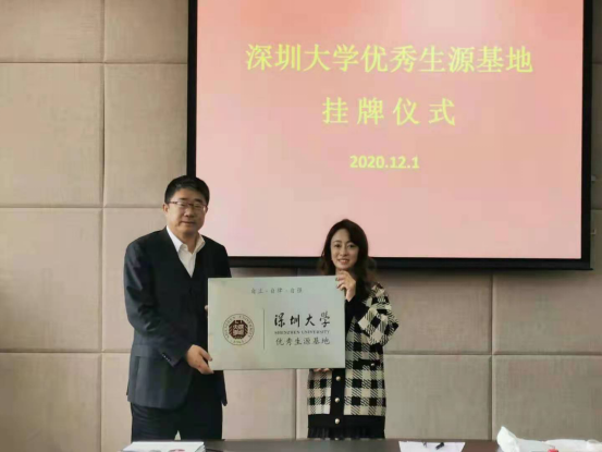 走访的5所中学近五年为我校提供数十位优质生源。在分别与诸校教学副校长、教务主任举行的“深圳大学-高中座谈会”上,双方互通有无,就所在高中与深圳大学现状进行分析,沟通资源整合及共享问题,加大与深圳大学合作力度、扩展双方合作模式。5所中学均表示愿与深圳大学建立长期合作关系,保持友好交流沟通,并继续对深圳大学相关招生活动给予积极支持,同时也提出数项促进合作的建议。座谈结束后,双方签订深圳大学优秀生源基地建设协议,并共同为“深圳大学优秀生源基地”揭牌。